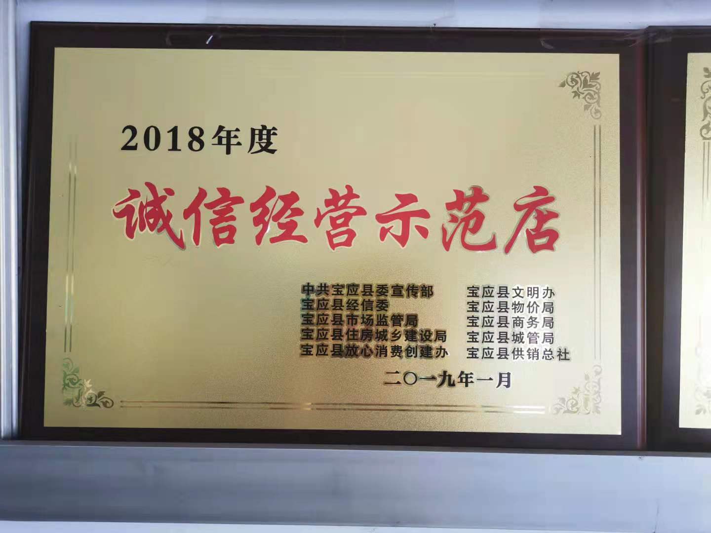 2018年誠信經(jīng)營(yíng)示范店 /honor